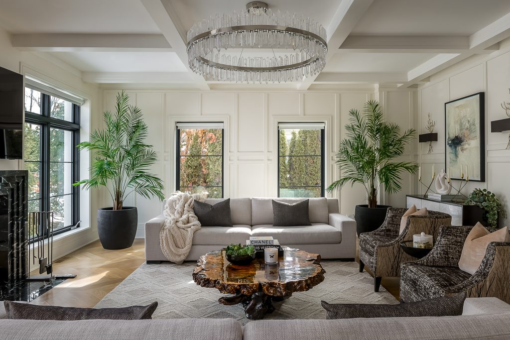The modern transitional aesthetic of the home is defined by its harmonious blend of contemporary design principles and traditional elements, creating a timeless and inviting space. Tony’s interior design photography captures this fusion of styles beautifully, highlighting the home’s clean lines, neutral color palette, and luxurious finishes, all while showcasing its dramatic design touches.