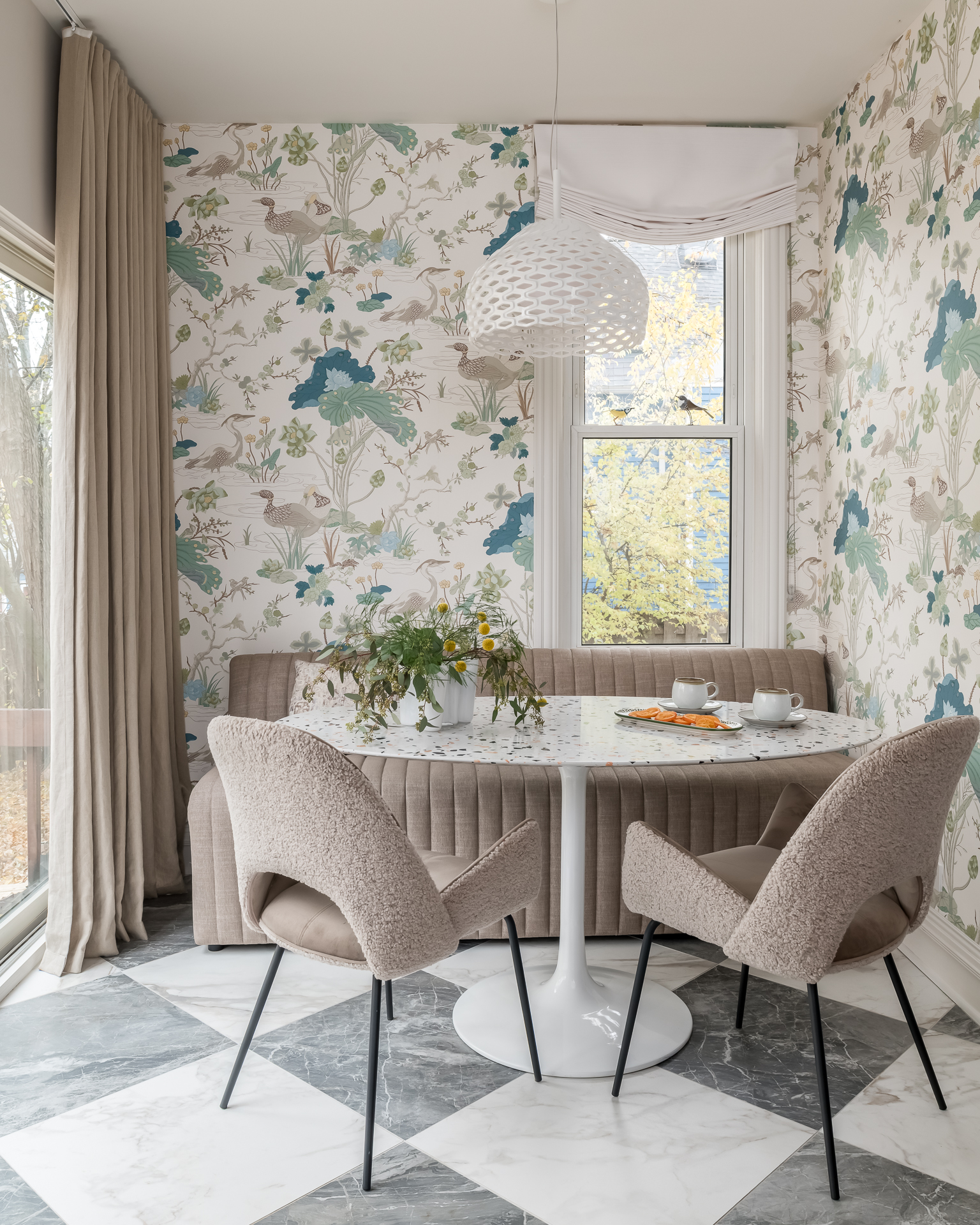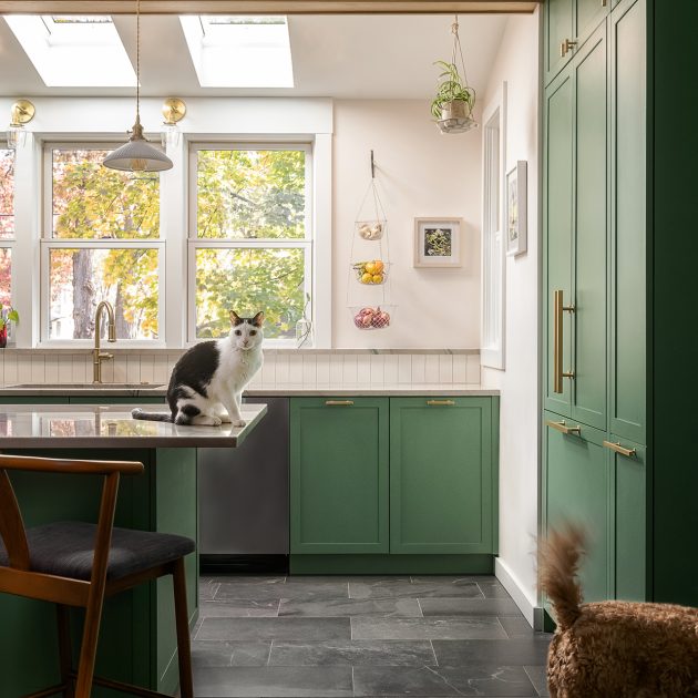 Adina Hall Design took on this modern kitchen renovation in a historic Evanston home. Inspired by traditional English gardens and botanical color palettes, Adina crafted an inviting space that is both timeless, modern, and nostalgic all at the same time.