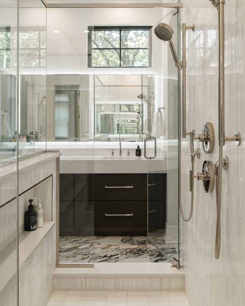 Located in the northern suburbs of Chicago, this custom home designed by Icon Building Group features a seamless combination of modern architecture and eclectic interior design elements, creating a luxurious yet personal space. The home embraces bold colors, mixed textures, and unexpected design choices, resulting in a luxury residence that feels entirely unique.